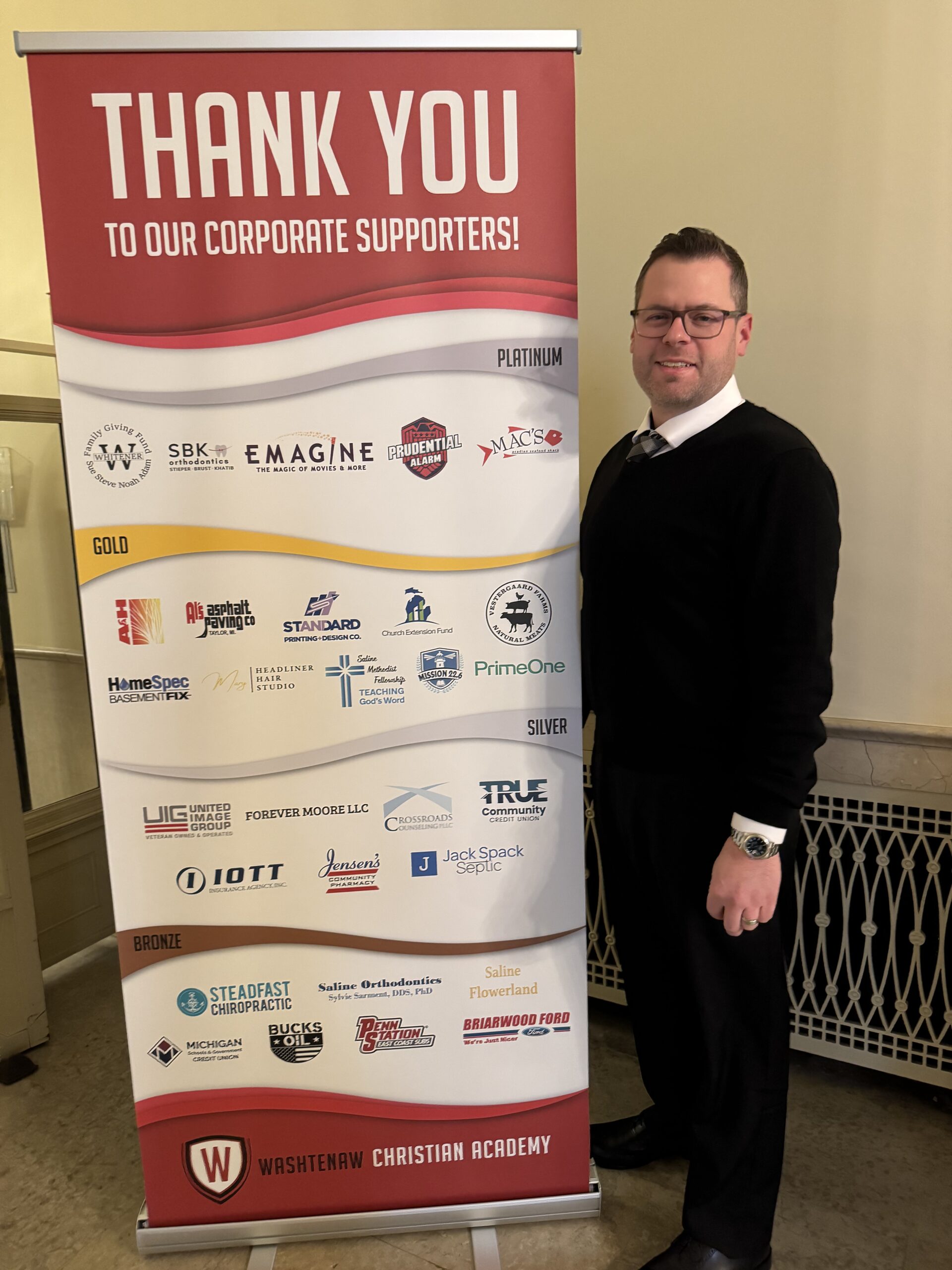 A key part of the evening was recognizing the many businesses, organizations, and individuals who support the mission of Washtenaw Christian Academy. Sponsors were acknowledged throughout the venue and event materials, highlighting the partnerships that make events like this possible.